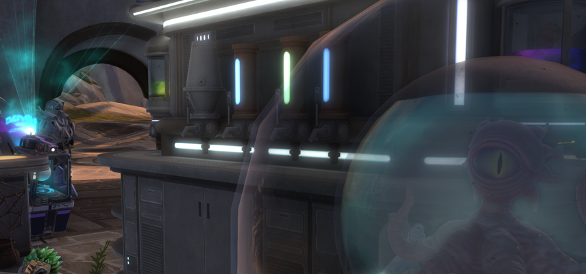 Dummerweise hatte ich keine Antwort darauf, also hab ich das glubsche Ding das da in dieser schwebe-Glaskuppel drinnen war, einfach wieder in die Kiste gestopft, Deckel zu und gesagt: "Okay, dann nehm' ich’s halt wieder mit, kein Ding." Dachte, ich geb’s auf der nächsten Station bei 'nem Fundbüro ab oder so. Aber nope. Weil, kaum wurde ich voll gut bezahlt, der übliche Kram nach der Lieferung und die Kunden halt immer voll nett geben Mir noch sogar Kaugummi mit. Jedenfalls da bin ich wieder auf meinem Schiff und hab den Ort verlassen, höre ich plötzlich so’n leises "Blubb" hinter mir. Dreh mich um – Kiste offen, Glubschding draußen.